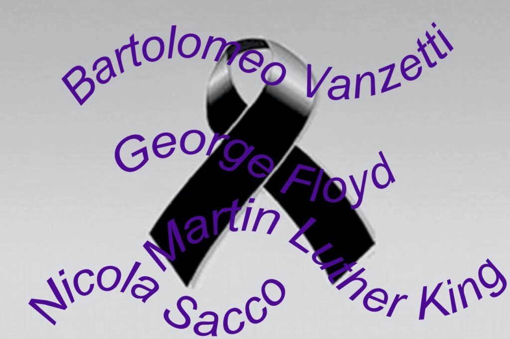 Aggiungerò il nome di George (Floyd) alla mia personale ‘anagrafe mortuaria’ americana; sarà congiunto a: Bartolomeo (Vanzetti), Nicola (Sacco), Martin (Luther King). Spero vivamente di non dover aggiungere altri nomi alla lista.